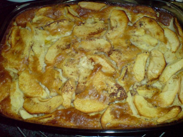 Graisser un plat en pyrex et répartir 500g de pommes épluchées et coupées en lamelles