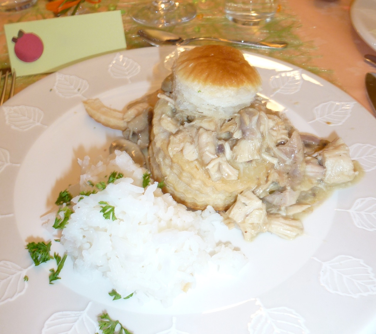 J’ai servi avec du riz thai parsemé de persil et je n’ai pas oublié la forme qui fait du vol-au-vent la fameuse « bouchée à la reine » 🙂