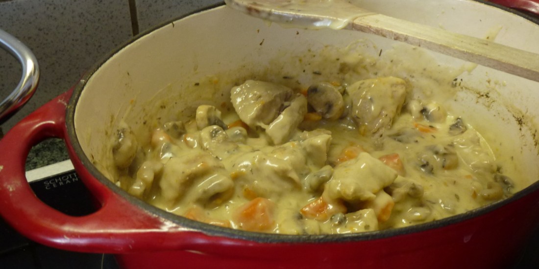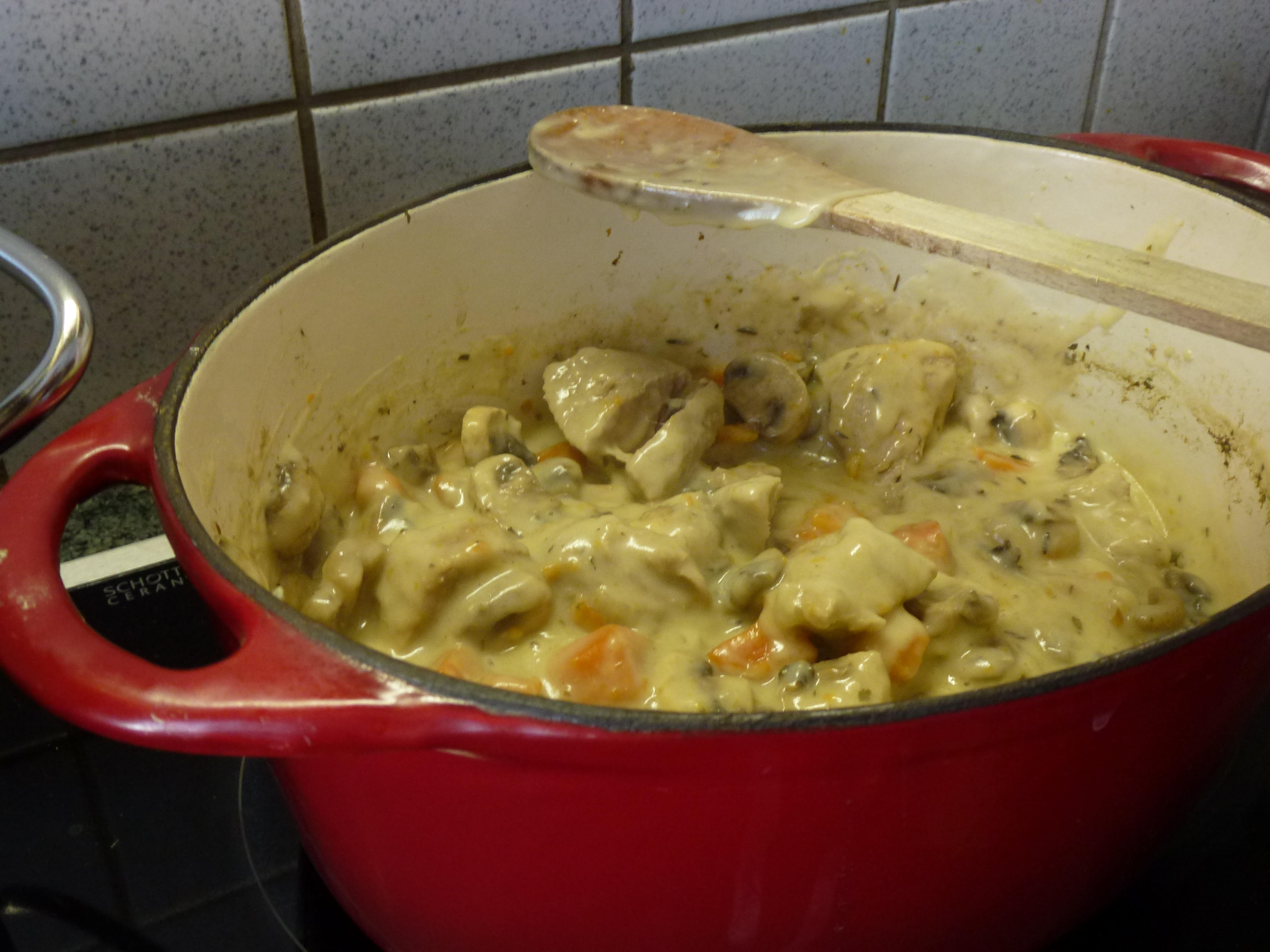 Servir avec du riz, de la purée ou de bonnes frites 🙂 Moi j’ai servi avec de l’Ebly.