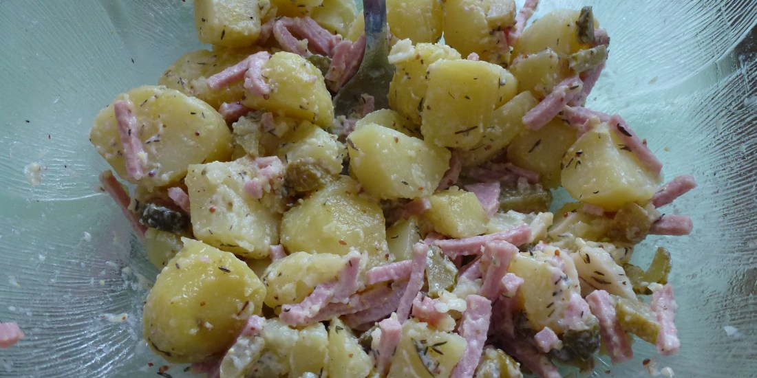 Quand il fait chaud, comme il est agréable de manger une salade froide … Voici donc une recette à la base luxembourgeoise « Gromperenzalot » préparée à ma façon car pour celles qui suivent ce blog depuis longtemps, je m’inspire des recettes sans les suivre à la lettre 🙂