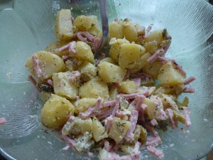 En français ce sera salade de pomme-de-terre et je dois vous avouer que je me suis REGALEE ce soir !!!