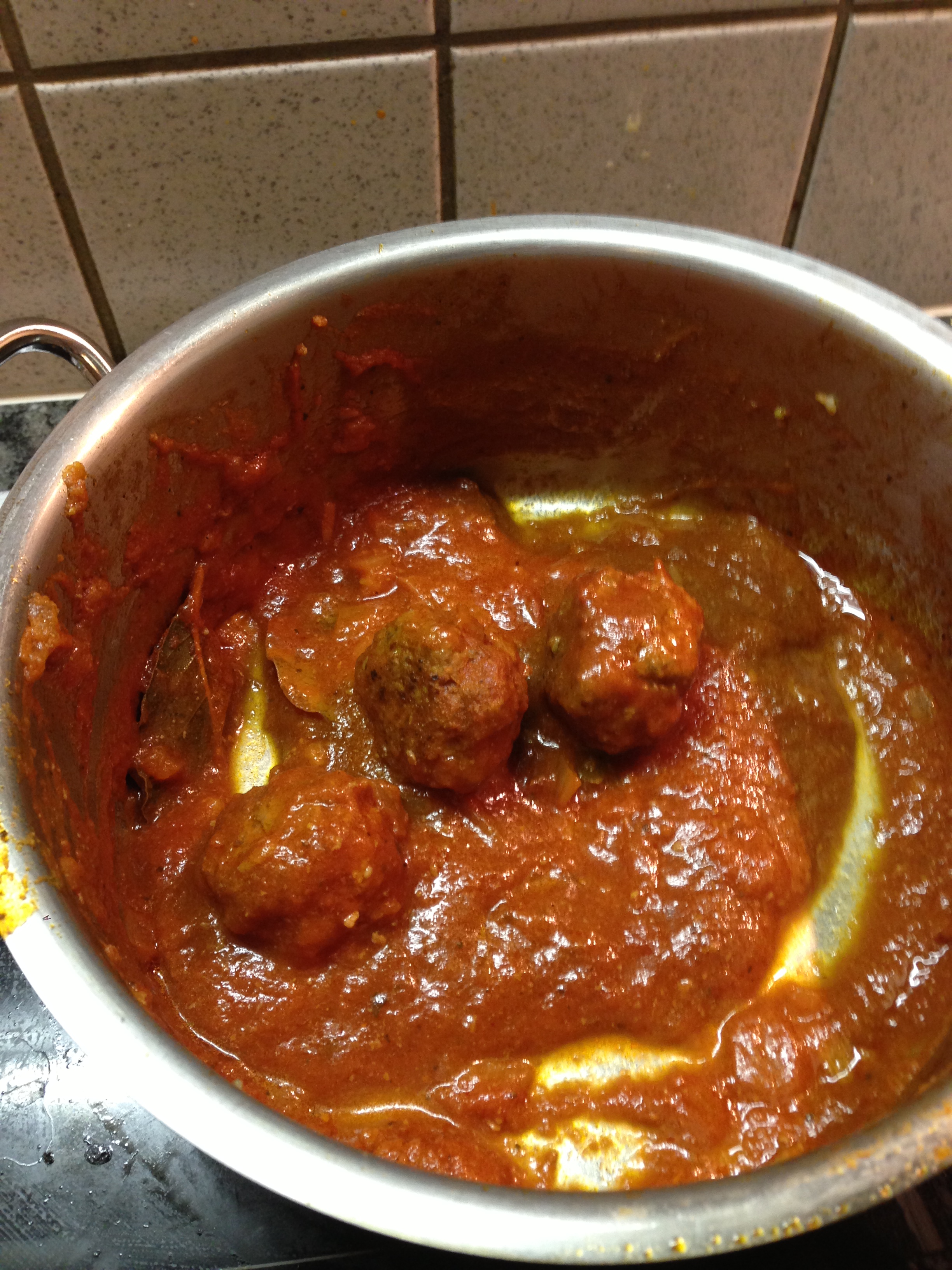 Ajouter dans la sauce les boulettes de viande afin qu’elles finissent de cuire dans la sauce tomate.